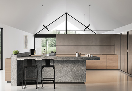Para contribuir más al bienestar cotidiano de la persona en la cocina, Valcucine ha cuidado también detalles como el panel con luz que, dentro de los elementos especiales, aporta más sensación de libertad. La selección de los materiales matéricos, además del valor estético, posee una fuerte caracterización sensorial que recuerda las sensaciones ancestrales.