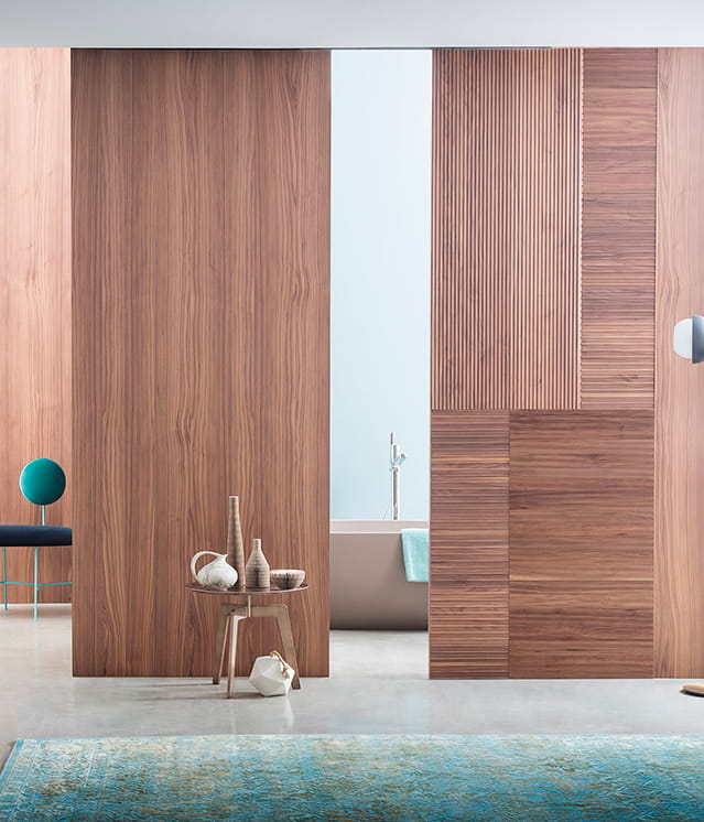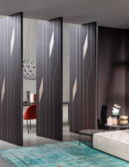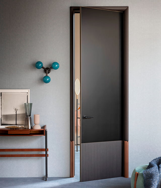 Lualdi porte es líder del mercado. Su cartera ofrece infinidad de soluciones técnicas, como puertas batientes con aperturas de suelo a techo, puertas pivotantes enrasadas a la pared, puertas con bisagras ocultas con picaporte magnético o puertas modernas de alturas especiales. Además, representan el diseño moderno, la creatividad y la calidad. Las creaciones de esta firma se caracterizan por su estilo propio, su calidad técnica y un proceso de fabricación cuidado hasta el mínimo detalle. Lualdi cree firmemente en la necesidad de un diseño que acompañe su función de forma coherente. Por ello crea puertas que dialogan con los espacios que protegen y a los que dan paso. Son una transición hacia otro momento, un elemento que fluye sin esfuerzo para separar ambientes y generar espacios llenos de calma.
