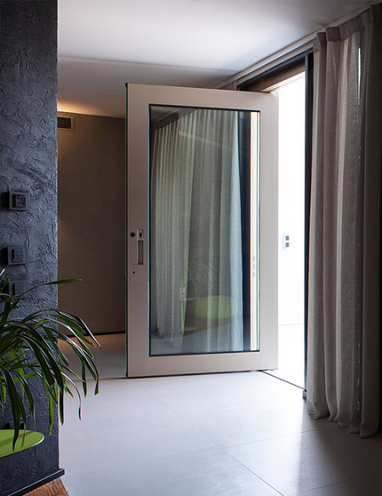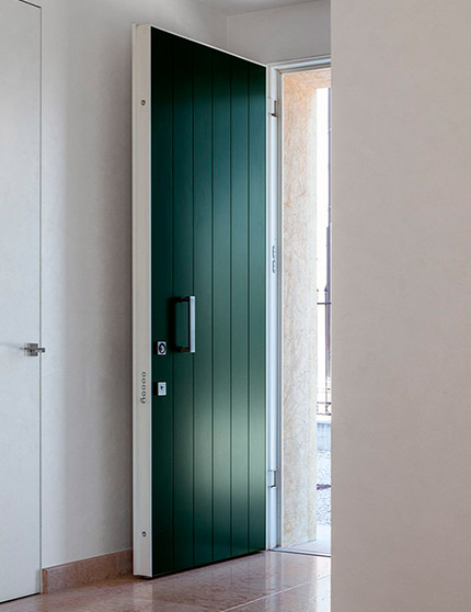 OIKOS es una mirada al futuro desde la tradición. Sus puertas blindadas de gran formato tienen unos acabados impecables que convierten una entrada en la mejor carta de presentación de un edificio. Es la guinda a un proyecto global motivado por el amor al diseño y a los detalles exclusivos y diferenciales, completando una reforma impecable, consciente y respetuosa. Escoger una puerta OIKOS va mucho más allá de los posibles motivos ligados a la seguridad. Un componente de estas características garantiza una disminución del consumo energético gracias a sus propiedades aislantes térmicas y una mayor intimidad, protegiendo el interior de los ruidos externos gracias a su aislamiento acústico, del viento y del agua.