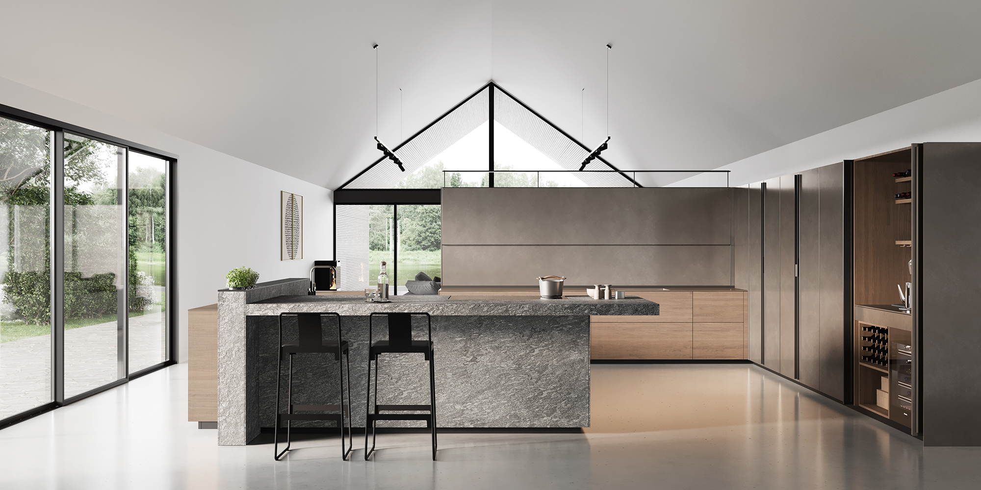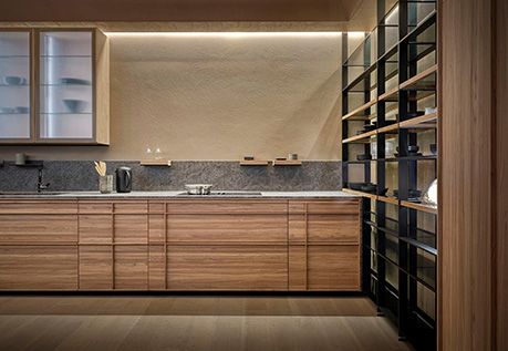 Para contribuir más al bienestar cotidiano de la persona en la cocina, Valcucine ha cuidado también detalles como el panel con luz que, dentro de los elementos especiales, aporta más sensación de libertad. La selección de los materiales matéricos, además del valor estético, posee una fuerte caracterización sensorial que recuerda las sensaciones ancestrales.